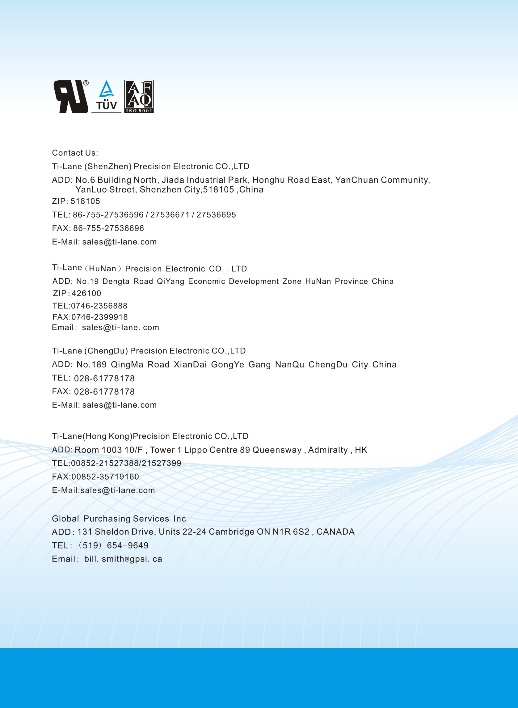 Ti-lane Catalog